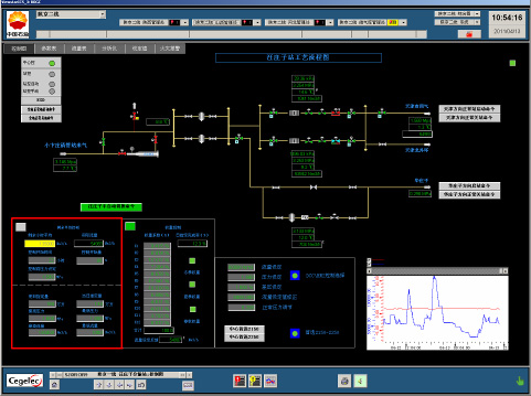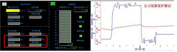 紅色區(qū)域?yàn)槭S嗥骄髁靠刂频闹锌豀MI畫面,主要內(nèi)容包括啟用/停用狀態(tài)、今/明兩日日指定錄入、啟用條件輸入、壓力/流量限值、計算流量和真實(shí)流量、壓力/流量趨勢等。